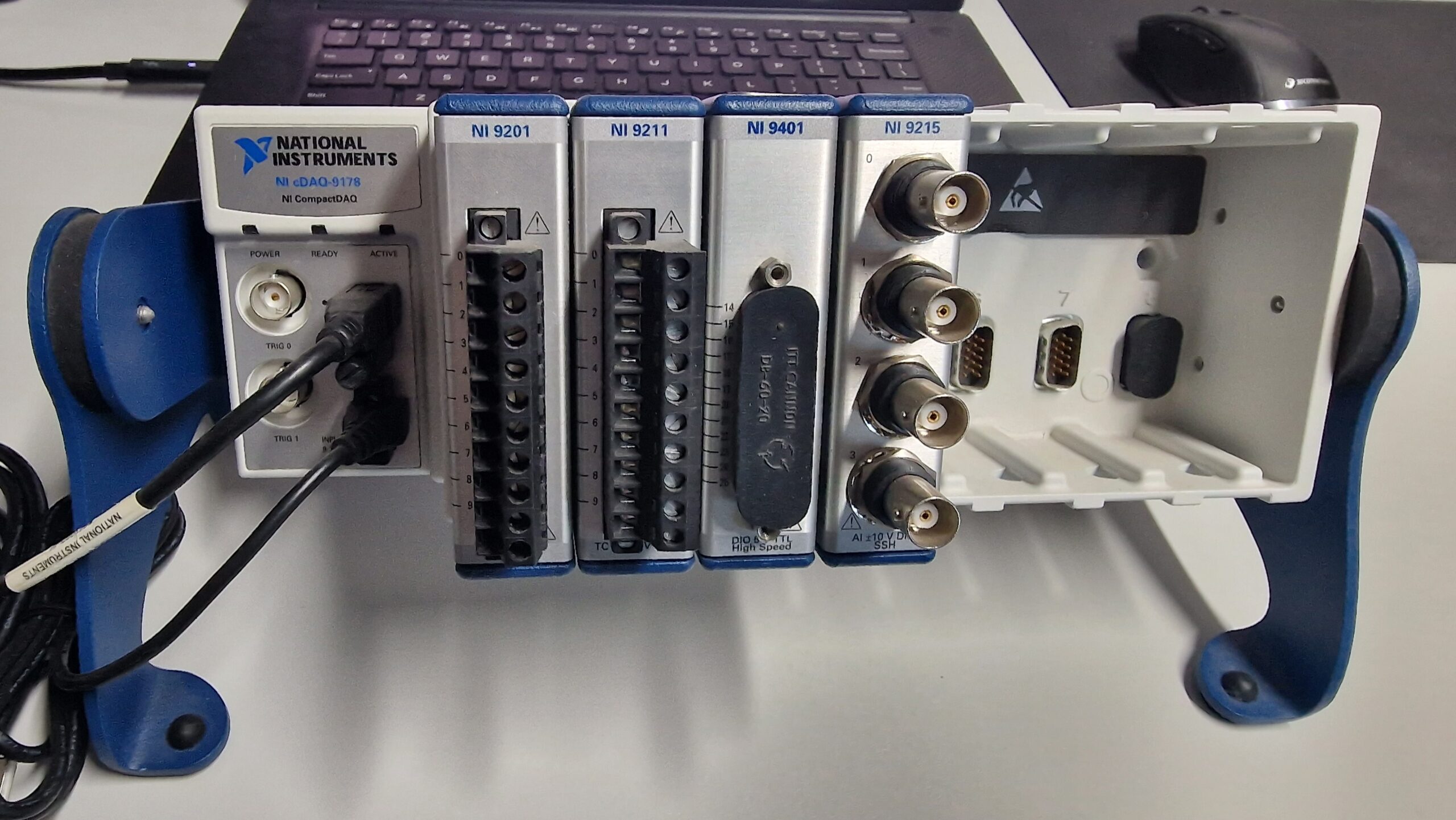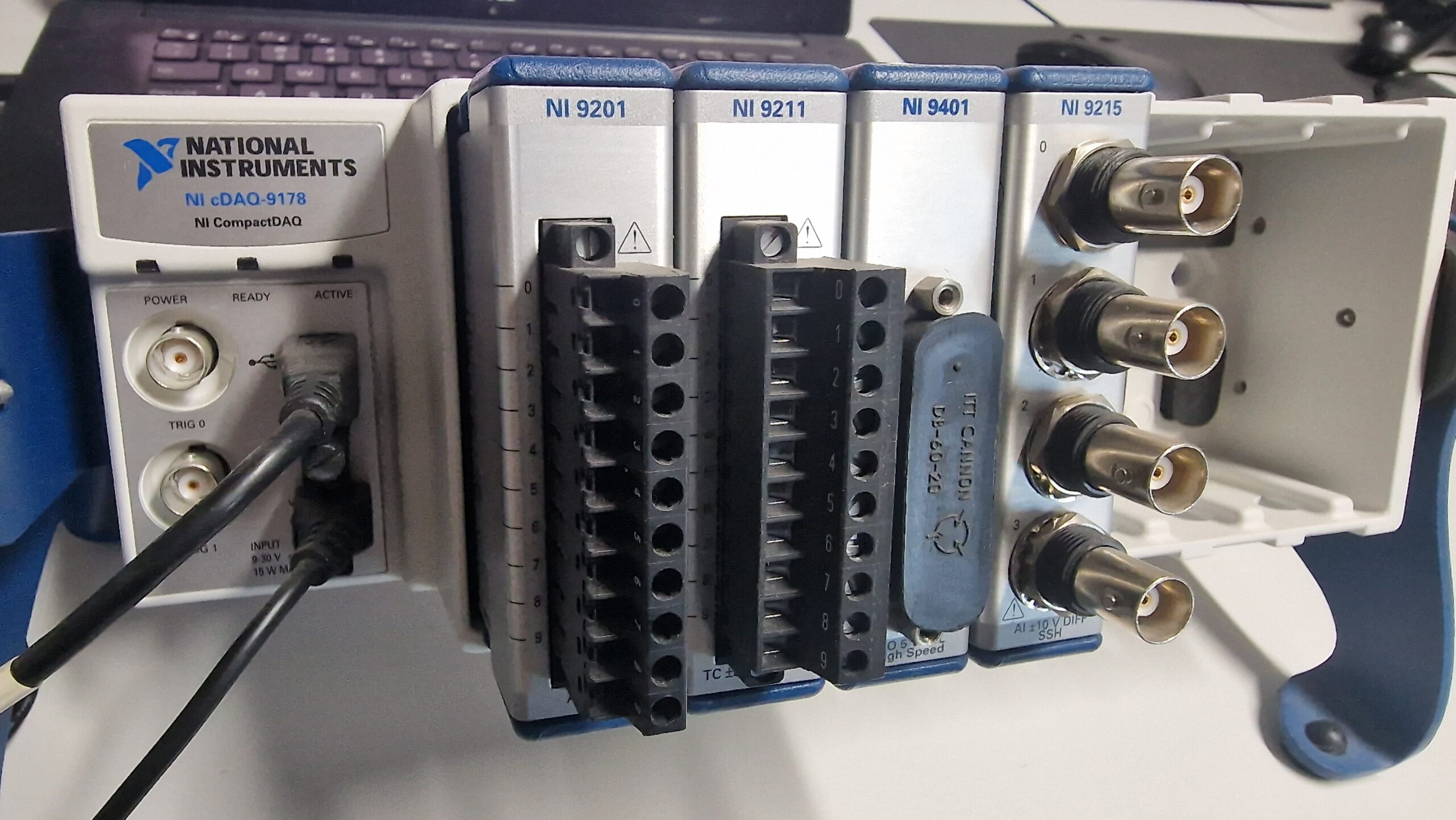 Karta pomiarowa cDAQ-9178 firmy National Instruments to obudowa USB CompactDAQ i moduły umożliwiające różnorodne pomiary. System jest przeznaczony do małych systemów pomiarów przenośnych. Obudowa zapewnia prostotę działania typu plug-and-play oraz pomiarów elektrycznych. Obudowa pomaga w kontroli pomiaru czasu, synchronizacji i przesyłaniu danych pomiędzy modułami I/O serii C oraz zewnętrzną jednostką hosta. Można użyć obudowy w połączeniu z różnymi modułami I/O serii C, w celu wytworzenia różnych analogowych jak i cyfrowych I/O, a także pomiarów licznika/timera. cDAQ-9178 posiada 4 uniwersalne liczniki/timery 32-bitowe. Dostęp do liczników, jak i przesyłanie sygnałów zegara / impulsów wyzwalających, możliwe jest za pomocą dwóch wbudowanych złączy BNC.
