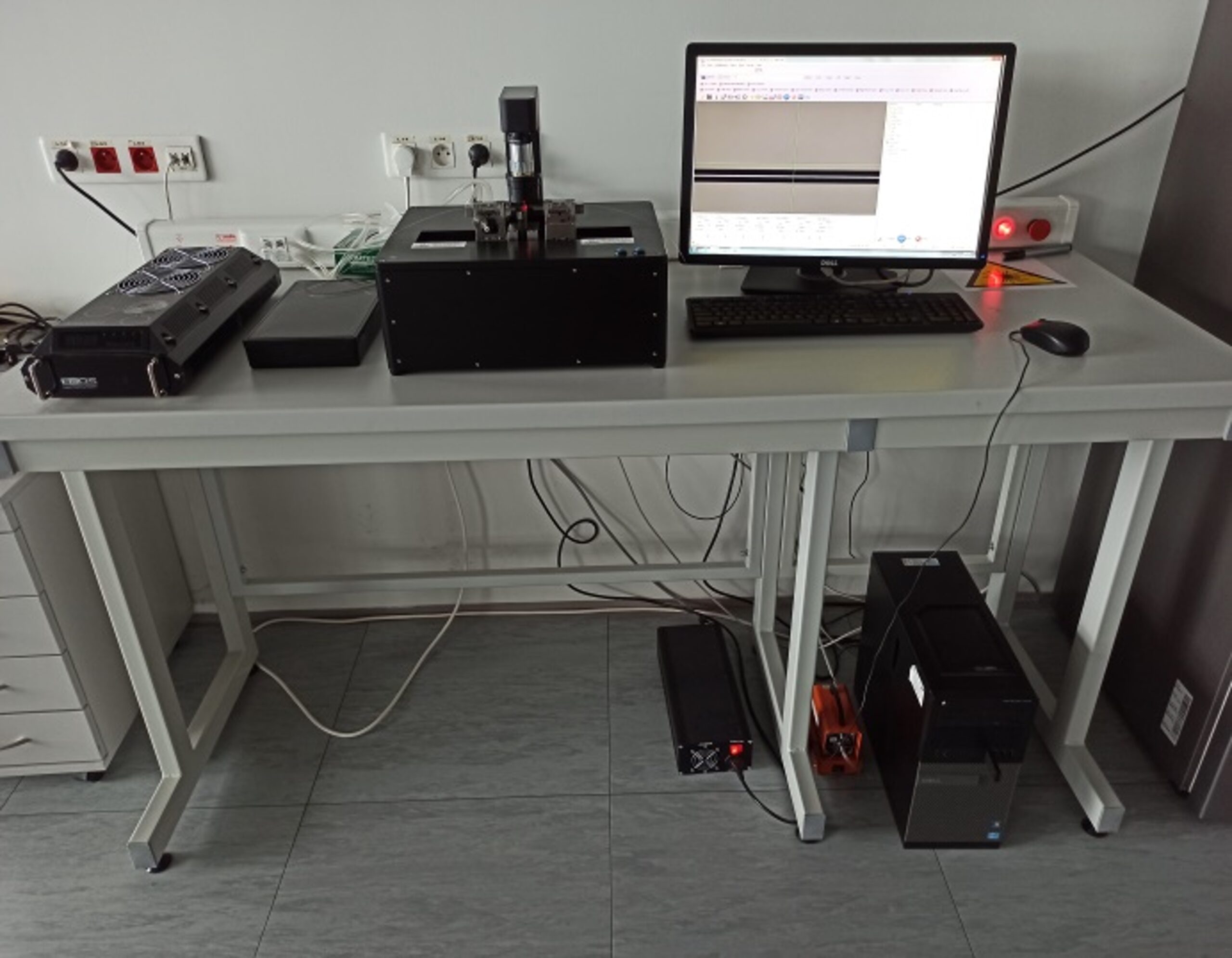 Stanowisko składa się ze specjalistycznej spawarki światłowodowej GPX-3000 firmy Vytran sterowanej za pomocą komputera PC z oprogramowaniem, łaźni ultradźwiękowej, pompy próżniowej oraz układu chłodzenia cieczą. Urządzenie Vytran GPX-3000 jest wszechstronną platformą przeznaczoną do wytwarzania spawów, stożków, łączników, niestandardowych zakończeń i łączników z dużą precyzją i niskimi stratami. Precyzyjna kontrola położenia i orientacji włókien umożliwia szereg zaawansowanych zastosowań związanych z łączeniem włókien utrzymujących polaryzację, włókien fotonicznych i innych włókien specjalistycznych z rdzeniami mikrostrukturalnymi. Urządzenie pozwala na wytwarzanie periodycznych struktur złożonych z punktowych przewężeń na włóknie światłowodowm tworząc strukturę LPG (ang.: Long Period Gratings). Zakres posuwu wzdłuż osi włókna zapewnia możliwość tworzenia struktur o długości do 180 mm z rozdzielczością 250 nm.