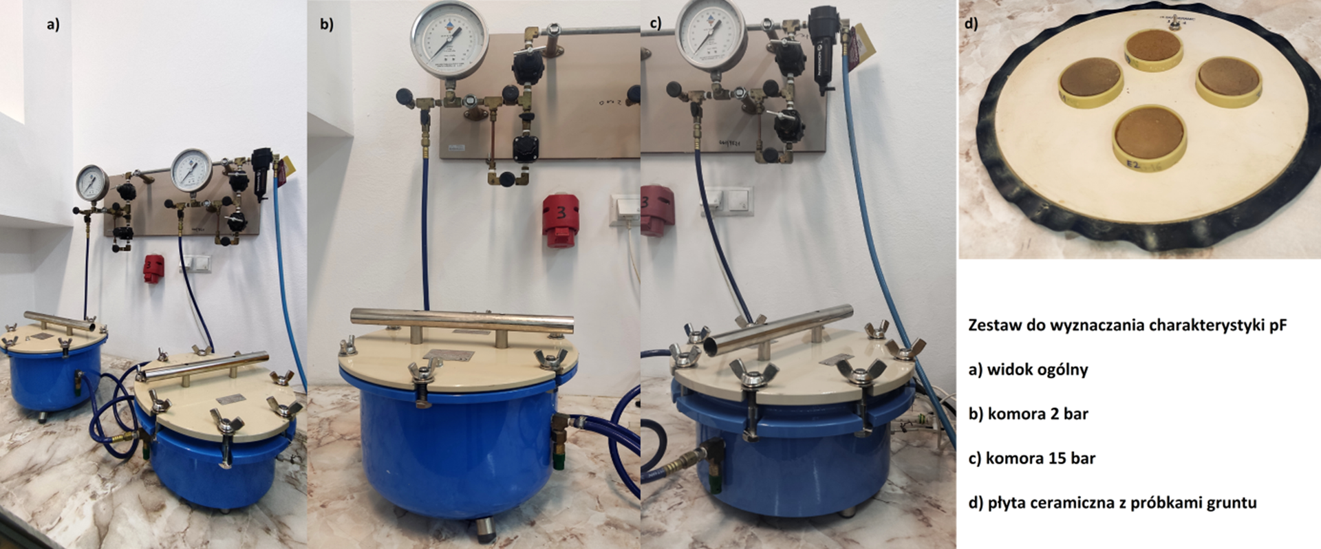 Aparat ciśnieniowy z płytami ceramicznymi do określania krzywej pF (charakterystyki retencyjnej) gleb, gruntów oraz wodochłonnych materiałów budowlanych.