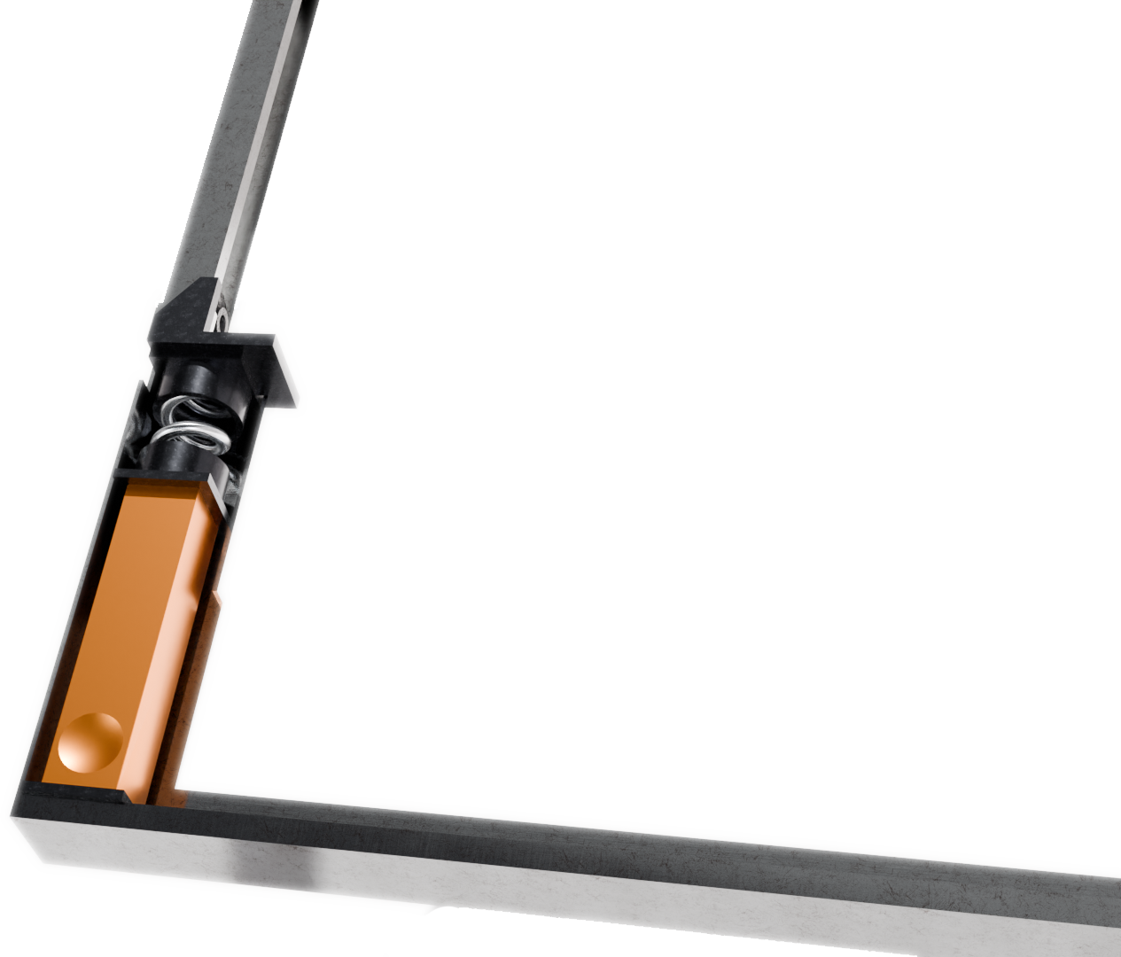 Innowacyjny mechanizm zabezpieczeń – specjalne zaciski i kołki drążone zapobiegają uszkodzeniom i odkształceniom konstrukcji.
