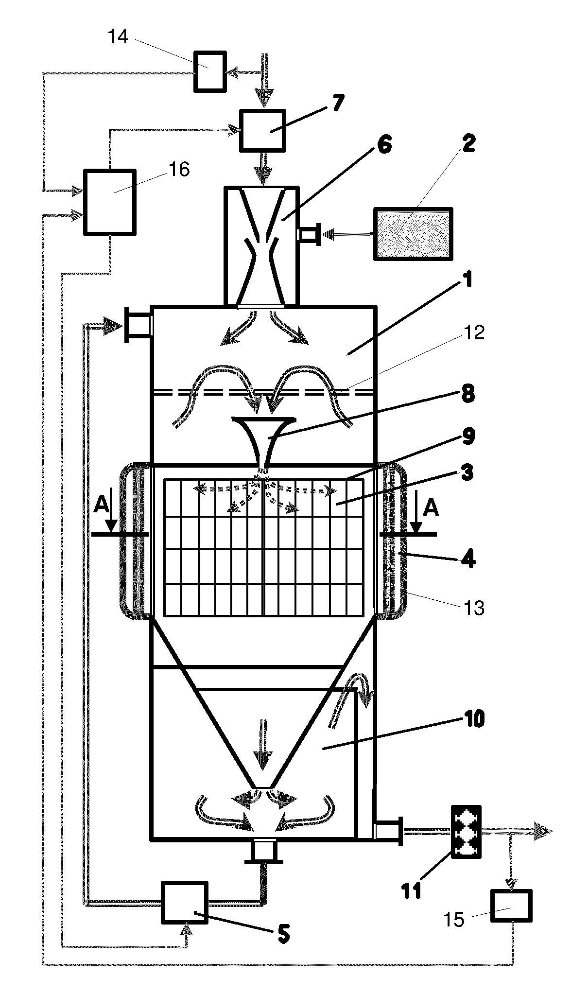 Przedmiotem wynalazku jest urządzenie do degradacji antybiotyków w wodzie posiadające zbiornik wstępny (1), zbiornik utleniacza (2), komorę reakcyjną (3), promienniki UV-C (4) oraz pompę cieczy (5) i dozownik inżektorowy (6). Charakteryzuje się ono tym, że dozownik inżektorowy (6) podłączony jest do instalacji wody zawierającej antybiotyki poprzez pompę wody (7) i połączony jest ze zbiornikiem utleniacza (2) oraz ze zbiornikiem wstępnym (1). Zbiornik wstępny (1) połączony jest z komorą reakcyjną (3) poprzez dyszę rozpylającą (8). W komorze reakcyjnej (3) znajduje się druciana przestrzenna siatka (9) pokryta warstwą fotokatalityczną. Na zewnętrznej stronie ścian komory reakcyjnej (3) wykonanych z materiału przepuszczającego promieniowanie UV-C zainstalowane są promienniki UV-C (4). Komora reakcyjna (3) połączona jest ze zbiornikiem przelewowym (10), którego odprowadzenie przelewowe połączone jest z instalacją wody oczyszczonej poprzez filtr wody (11). Odprowadzenie wylewowe z dolnej części zbiornika przelewowego (10) połączone jest ze zbiornikiem wstępnym (1) poprzez pompę cieczy (5).