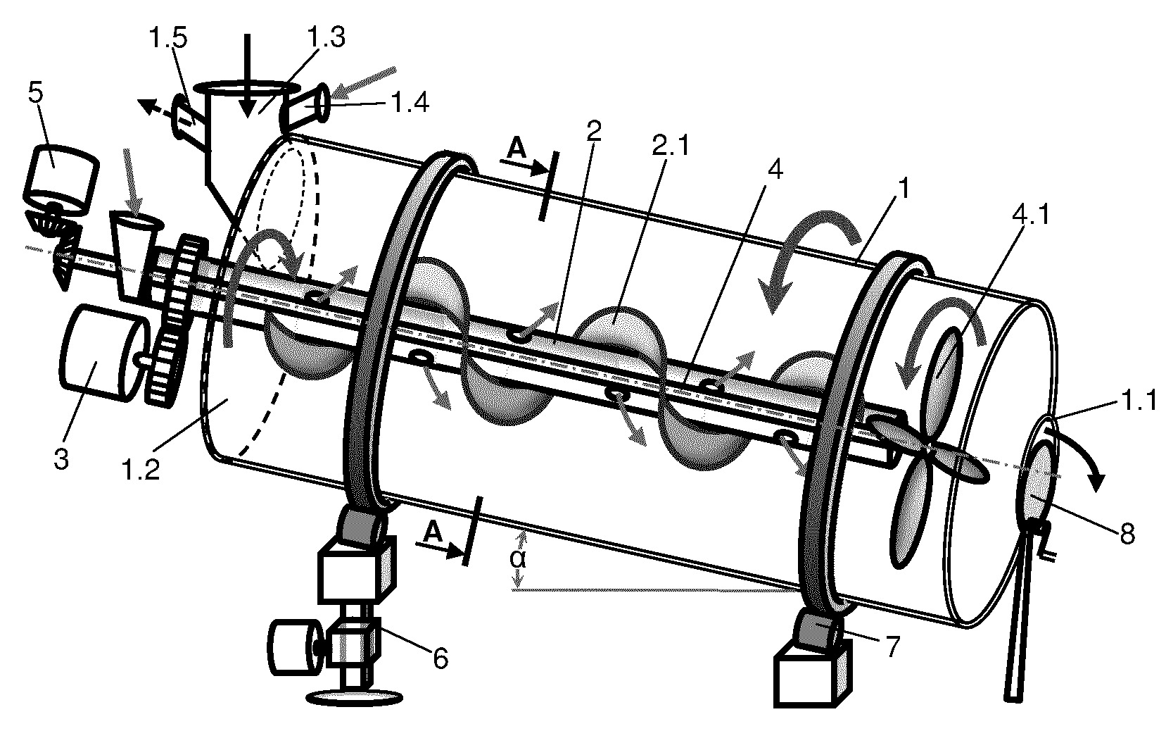 Przedmiotem zgłoszenia jest urządzenie do regulowanego spieniania asfaltu posiadające ogrzewany zbiornik (1) w kształcie walca ze spustem (1.1) w końcowej części, zaś w początkowej części zbiornika (1) znajduje się pokrywa (1.2) z wlotem asfaltu (1.3) oraz do wlotu asfaltu (1.3) podłączony jest króciec wlotu środka spieniającego (1.4) i króciec wydmuchowy (1.5). Wewnątrz zbiornika (1) w jego osi znajduje się pierwszy wał (2) w postaci rury z otworami znajdującymi się na jej powierzchni bocznej, do którego to pierwszego wału (2) zamocowane są pierwsze łopaty mieszające (2.1). Pierwszy wał (2) podłączony jest do dozownika środka spieniającego i sprzężony jest z napędem obrotowym (3). Wewnątrz pierwszego wału (2) znajduje się usytuowany współosiowo drugi wał (4) w postaci rury, który napędzany jest niezależnym napędem (5) i na którego końcu zamocowane są drugie łopaty mieszające (4.1). Charakteryzuje się ono tym, że oś zbiornika (1) nachylona jest do podłoża pod kątem ostrym (α). Do zewnętrznej powierzchni bocznej początkowej części zbiornika (1) zamocowany jest koniec podnośnika (6) usadowionego na podłożu. Do zewnętrznej powierzchni bocznej zbiornika (1) zamocowany jest mechanizm (7) obracający zbiornik (1) wokół jego osi. Pierwsze łopaty mieszające (2.1) są w kształcie wstęgi ślimaka, zaś drugie łopaty mieszające (4.1) tworzą śmigło. W spuście (1.1) znajduje się zasuwa (8).