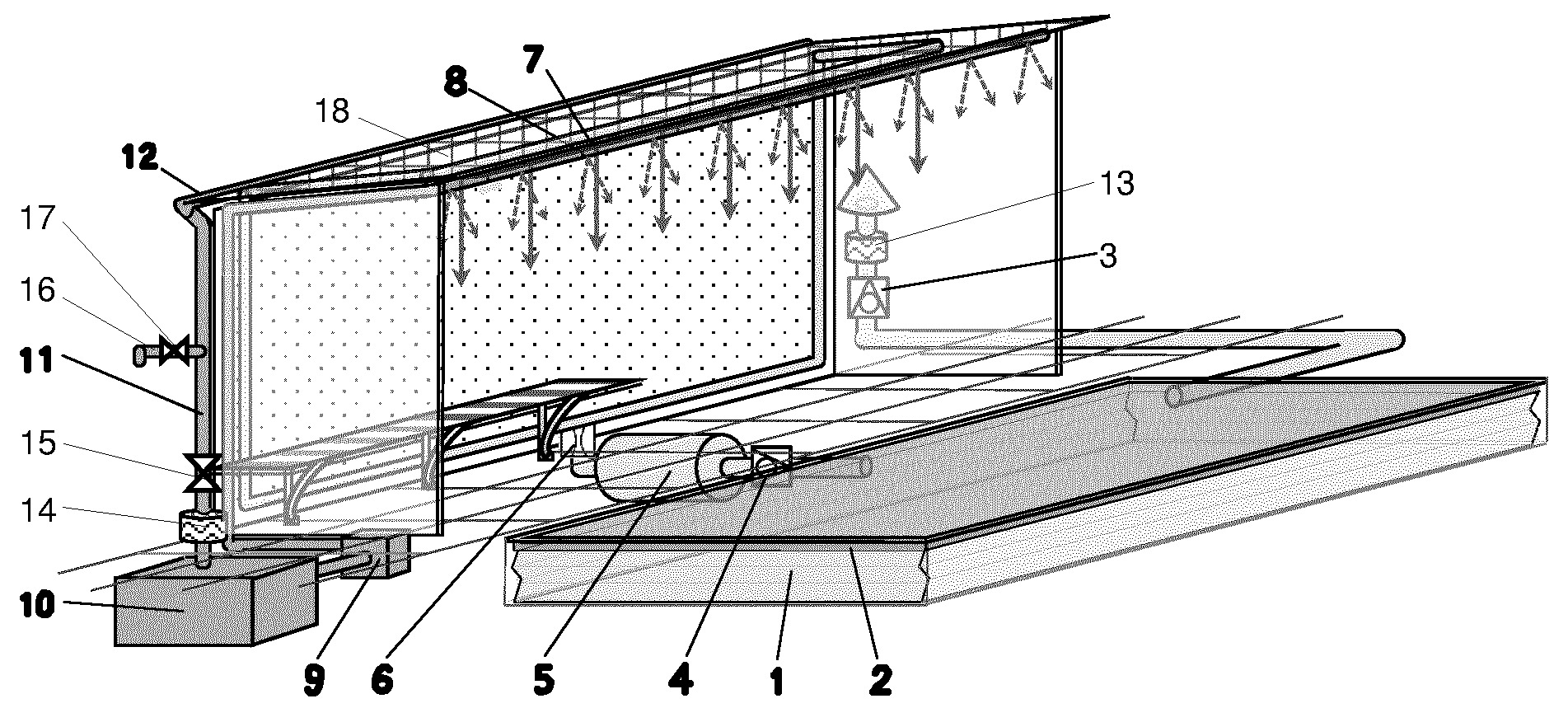 Przedmiotem wynalazku jest przystanek komunikacyjny z wiatą oczyszczającą powietrze posiadającą ściany i zadaszenie, zlokalizowany przy zatoce autobusowej. Charakteryzuje się on tym, że w obrębie zatoki, w miejscu zatrzymywania się pojazdów, jest zagłębiona komora, w której umieszczona jest poduszka pneumatyczna (1) posiadająca wlot i wylot powietrza, na której ułożona jest płyta najazdowa (2). Na wlocie powietrza do poduszki pneumatycznej (1) znajduje się pierwszy zawór zwrotny (3). Na wylocie powietrza z poduszki pneumatycznej (1) znajduje się drugi zawór zwrotny (4) i zbiornik sprężonego powietrza (5), z którego wylot z zaworem redukcyjnym (6) połączony jest z układem dysz (7) zamontowanych w zadaszenia nad wejściem do wiaty. W zadaszenia nad wejściem do wiaty znajdują się zraszacze (8), które połączone są poprzez pompę wody (9) ze zbiornikiem retencyjnym (10), zaś zbiornik retencyjny (10) połączony jest rurą spustową (11) z rynną (12) znajdującą się na krawędzi zadaszenia wiaty.